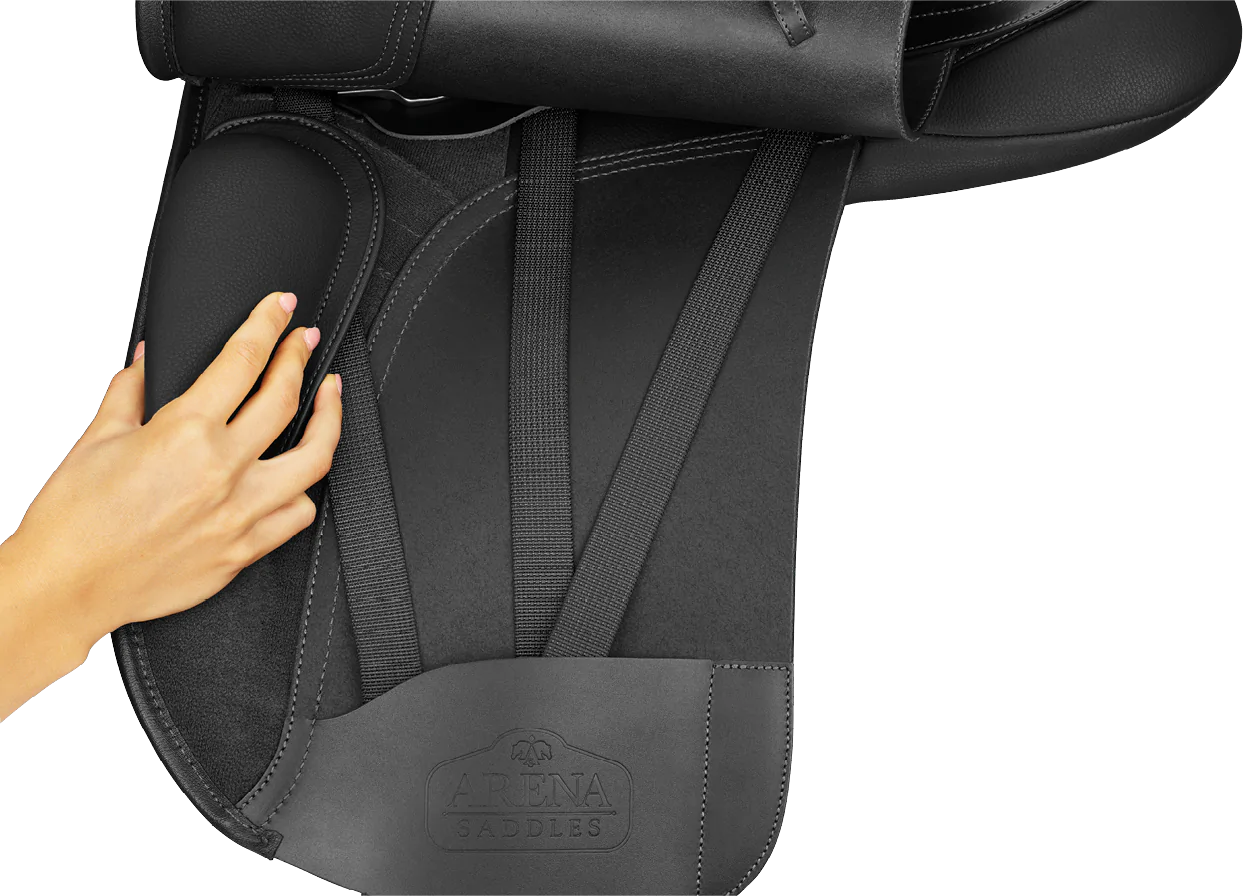 Arena Dressyr High Wither är särskilt utformad för hästar med hög manke eller mer markerad rygg. Den djupa sitsen och de stödjande blocken hjälper ryttaren till en korrekt position, samtidigt som sadeln ger hästen optimal frihet och komfort.