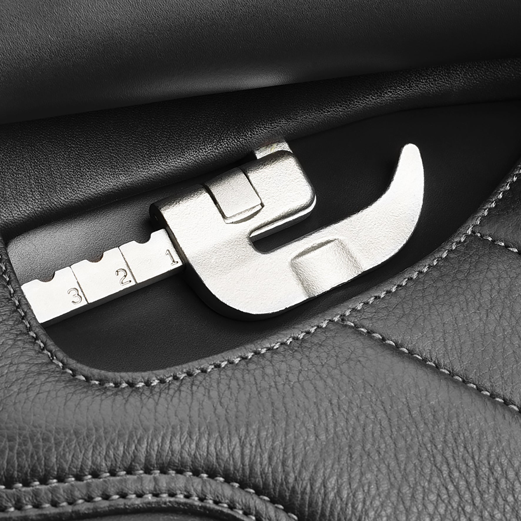 Tillverkad i exklusivt Luxe-läder, handplockat för sin silkeslena mjukhet, styrka och fantastiska grepp, ger sadeln en lyxig känsla och oslagbar hållbarhet. Varje detalj är utformad för att skapa den där distinkta känslan av kontroll och harmoni – i varje steg, varje rörelse, varje ridpass.